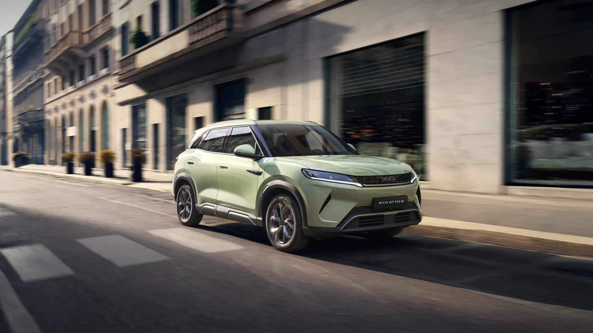 BYD ATTO 2 áp dụng ngôn ngữ thiết kế “Mặt Rồng” (Dragon Face) đặc trưng của BYD, được sáng tạo bởi Giám đốc Thiết kế Toàn cầu; ông Wolfgang Egger. Các phần bodykit nhô ra ở đầu và đuôi xe được làm ngắn cùng những đường cong mạnh mẽ trên thân xe tạo nên vẻ ngoài thể thao, trong khi đó, ngoại thất cứng cáp lại nhấn mạnh sự mạnh mẽ và bền bỉ.